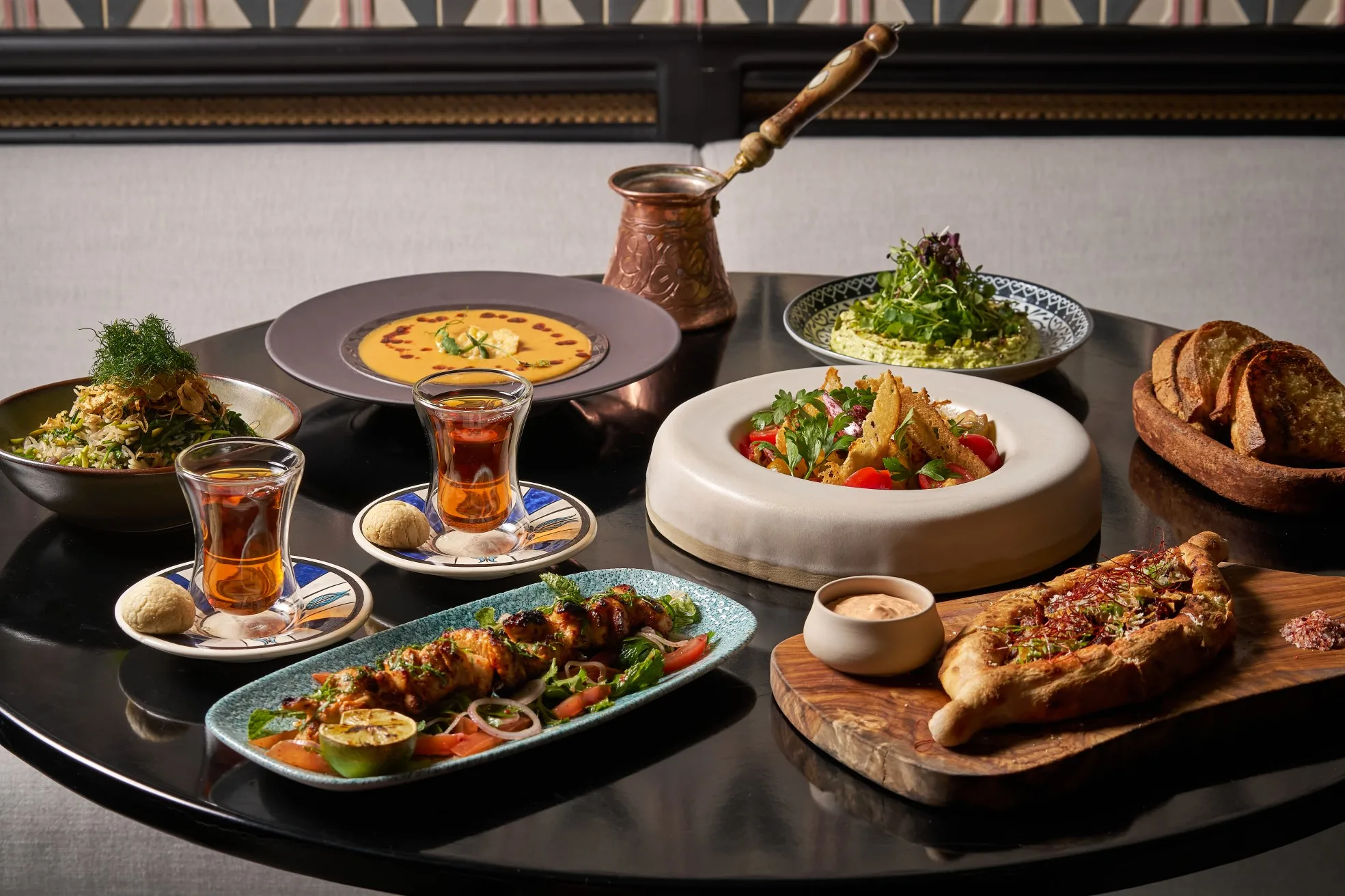 تجارب الطهي في مطعم “رويا”، يقدّم غداء الأعمال قائمة من ثلاثة أطباق تحتفي بنكهات المطبخ التركي، مع أطباق مميزة مثل فطيرة البيتا المحشوة بنوعين من الجبن مع بيض عضوي مطهو ببطء، وكباب الدجاج المشوي مع اللبن، وأسياخ الحبار الصغير المشوي. كما يمكن إضافة بقلاوة البندق الشهيرة في “رويا” كخيار إضافي. تُقام أمسيات “النّزار ” التركية كل يوم خميس، وتشمل مشروبات مُبتكرة مستوحاة من رمزية وألوان خرزة الحسد. أما دروس إعداد المشروبات، فتُقام كل يوم جمعة، حيث تتيح للضيوف التعرّف على تقنيات المزج الحديثة، يليها مزايا خاصة على العشاء. ويُختتم الأسبوع بفعالية “الراكي والمازة يوم الجمعة”، التي تجمع بين تشكيلة مازة مختارة، وموسيقى حيّة بإبداع من منسق الموسيقى، ومشروبات قائمة على الراكي في أجواء نابضة بالحيوية.
